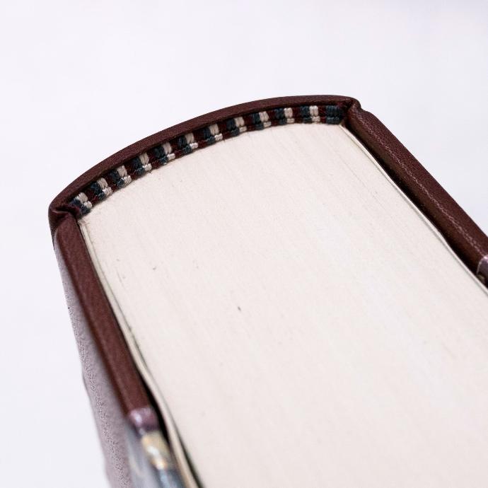 Les tranchefiles brodées permettent en plus de renforcer les coiffes, pour éviter que cette partie ne s'arrache dans le temps.